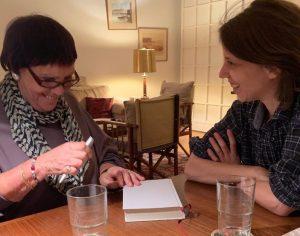 Das Foto zeigt Brigitte Fassbaender und Felicitas Braun am 13. November in München. Die Mezzosopranistin, Opernregisseurin und Gesangspädagogin signiert ihre Erinnerungen, in denen sie auch von der Gertraudenschule und ihrer Deutschprofessorin Dr. Laserstein schrieb.