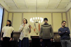 Mit: Ines Miro, Laura Mitzkus, Christian Erdt, Charles Toulouse; Dr. Ursula Rütten, Hanna Sjöberg, Stefan Paul Jacobs, Dr. Lucas Hardt; Felicitas Braun, Renske de Vries, Christian Tietz. – Foto von Lena Obst ©