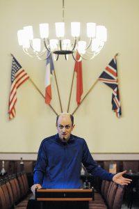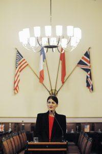 Wir stellen uns etwas vor, was es so nicht gibt: zum Tag der Europäischen Erinnerungskultur lädt der Verein für Völkerverständigung zu einem Symposion. Man erwartet sich Impulsreferate unter dem schlichten Titel „Ein Land und seine Verantwortung vor der Geschichte.“ Vier Universitätsdozent:innen werden in Berlin erwartet: vom Südeuropa-Institut, vom Südosteuropa-Institut, vom Nordeuropa-Institut und vom Institut für Germanistische Studien. Die vier Vortragenden beginnen staatstragend, mit der offiziellen Geschichtsschreibung, zum Mitschreiben. Dann melden sich Stimmen, die das jeweilige Geschichtsbild verrücken, es aus dem Rahmen treten lassen. Es gibt sie ja nicht, die Eine Erzählung, die Eine Position, Perspektive.