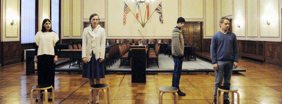 Das Recherchekollektiv Vajswerk zeichnet sich seit sieben Jahren durch Projekte aus, in denen Geschichte erforscht und dargestellt wird, multi-perspektivisch. Mit #geschichte_schreiben wird nun die Probe auf das Exempel gemacht: wie aus Geschichte Politik wird, wie manche Ereignisse für das historische Gedächtnis konstitutiv und manche verworfen, „vergessen“ werden. Im Zusammenspiel mit vier Historiker:innen verfolgen vier Schauspieler:innen geschichtspolitische Diskurse in Europa und laden Ende April 2023 zu einem fiktiven Symposion, zu einem richtigen Theaterabend: im historischen Saal der deutschen Kapitulation 1945, im heutigen Museum Berlin-Karlshorst.